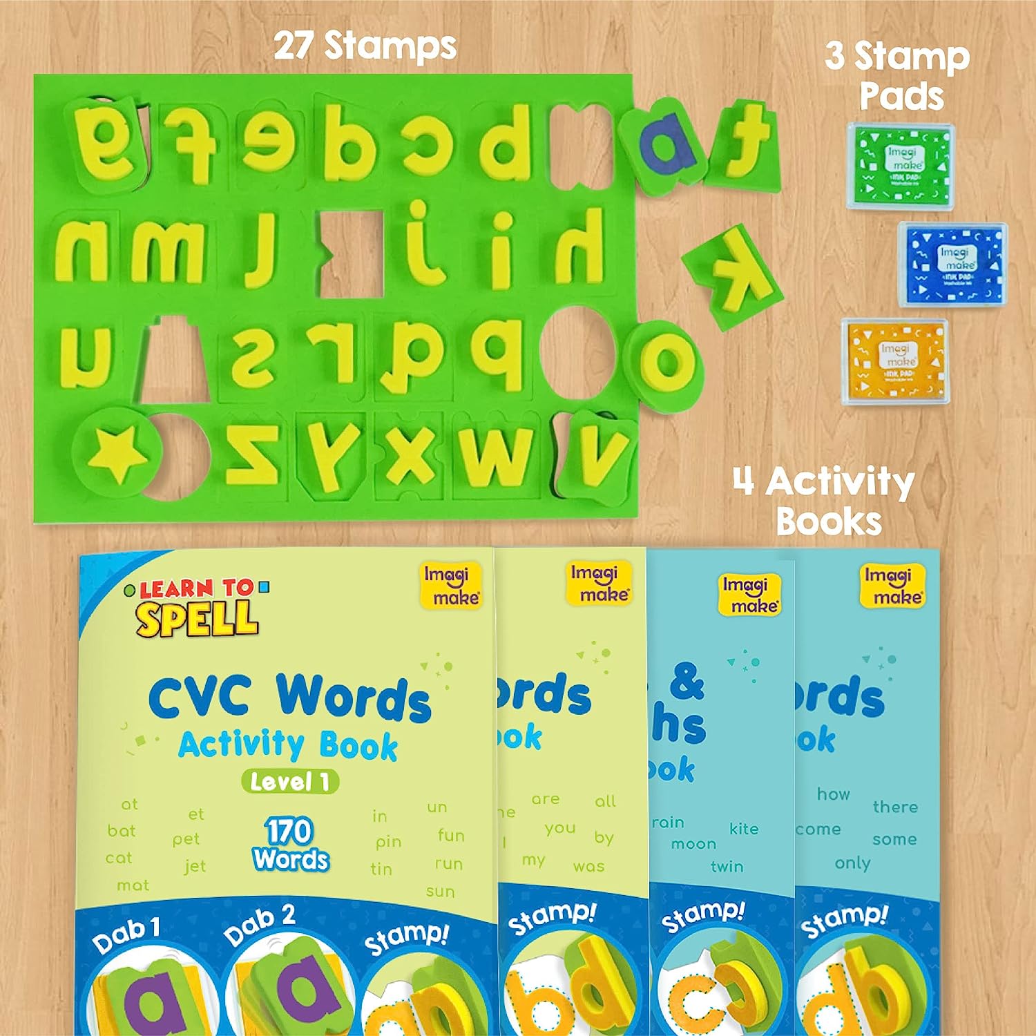 Imagimake Learn To Spell - Preschool Activities Set with Sight Words, CVC letters, Phonics Books - Educational Montessori Toy for Toddlers Aged 3, 4, 5 Years