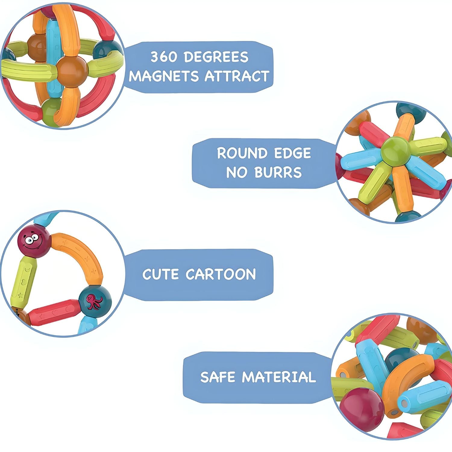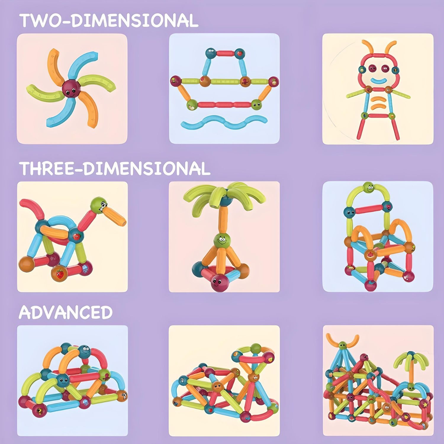 - Educational Value: Enhances STEM skills by encouraging kids to explore, invent, and build with various shaped magnetic sticks and balls.