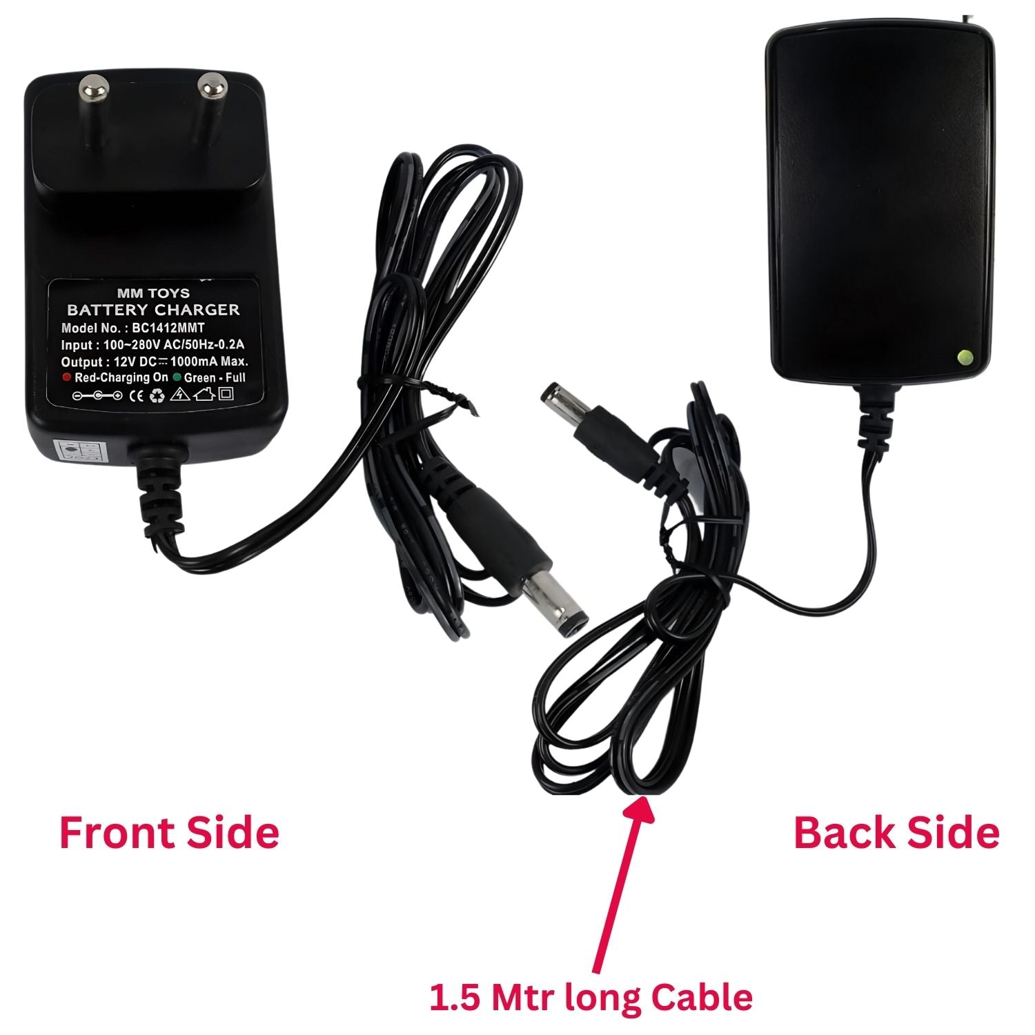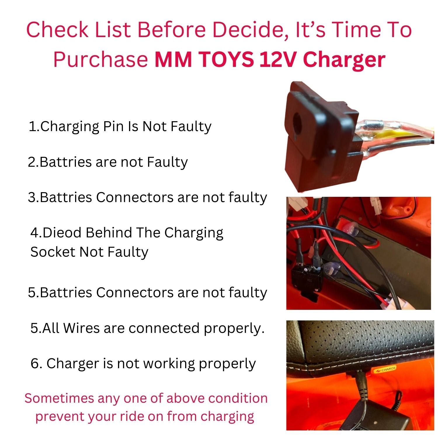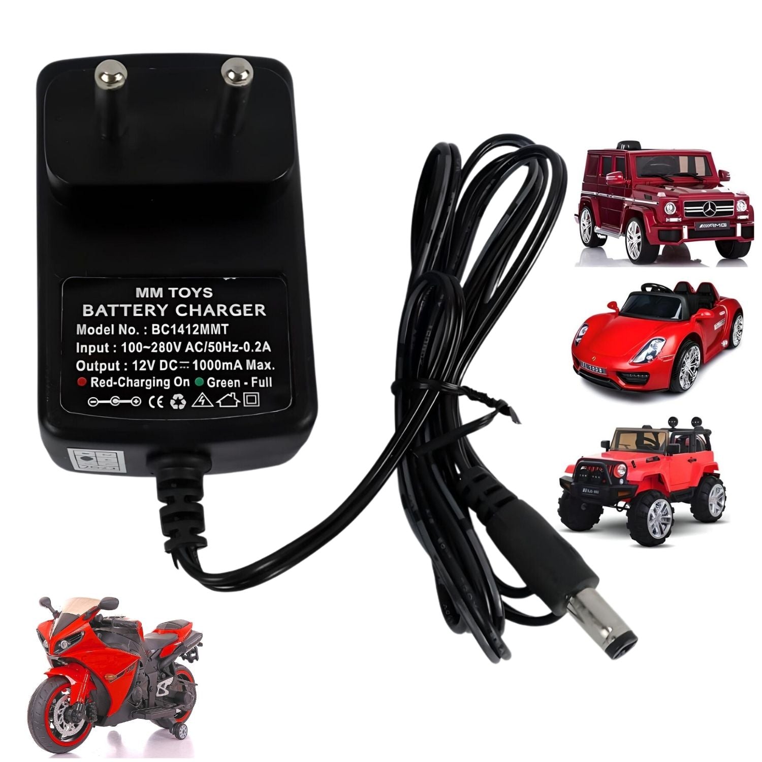 MM TOYS 12v Fast Charger For kids Electric Powered Ride On Car Bike Jeep Universal Round Hole Charger With charging indicator LED Power Adapter-Black
