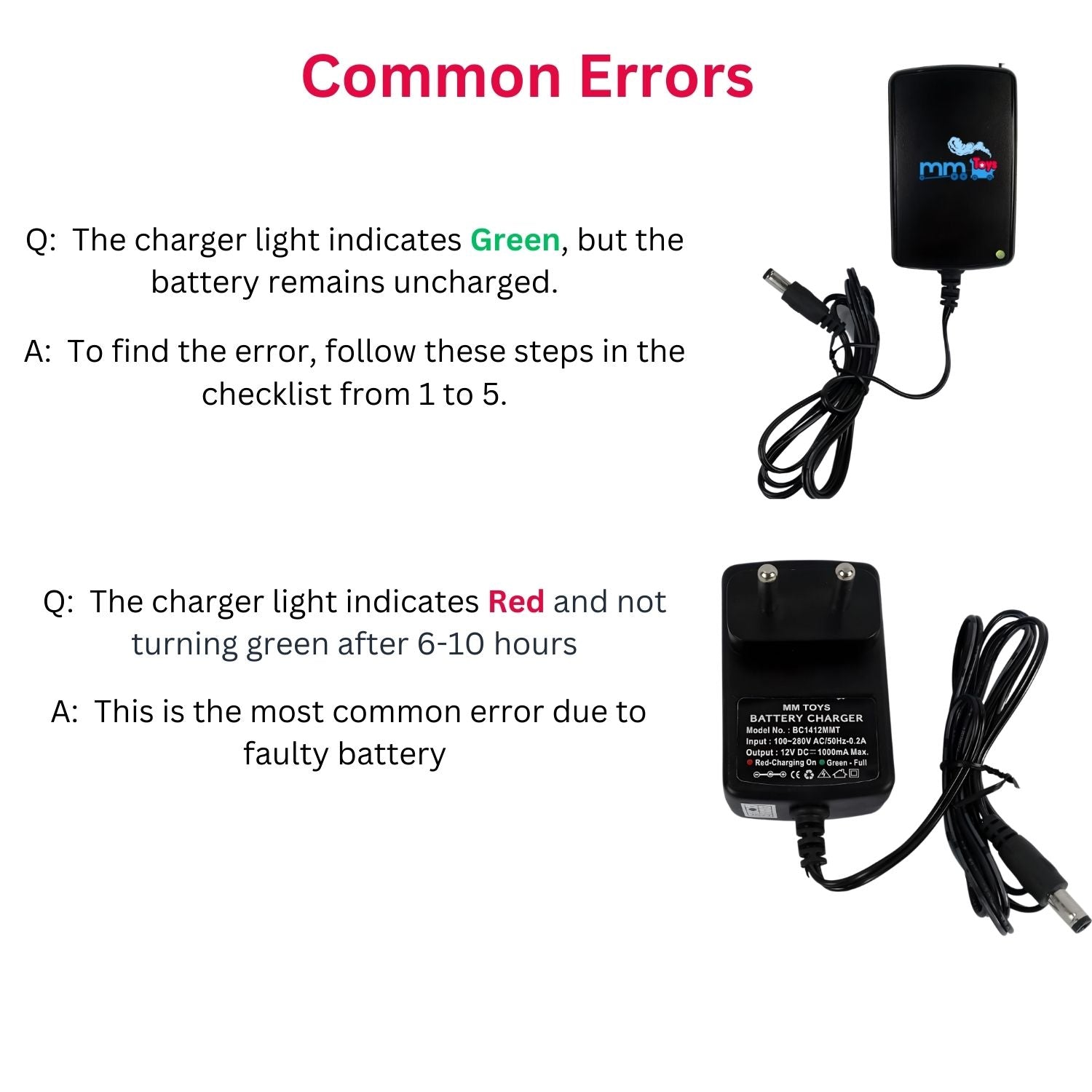 - Multi-purpose Charger: Specifically designed for 12v battery-powered kids' ride-on toys like cars, bikes, scooters, and jeeps.