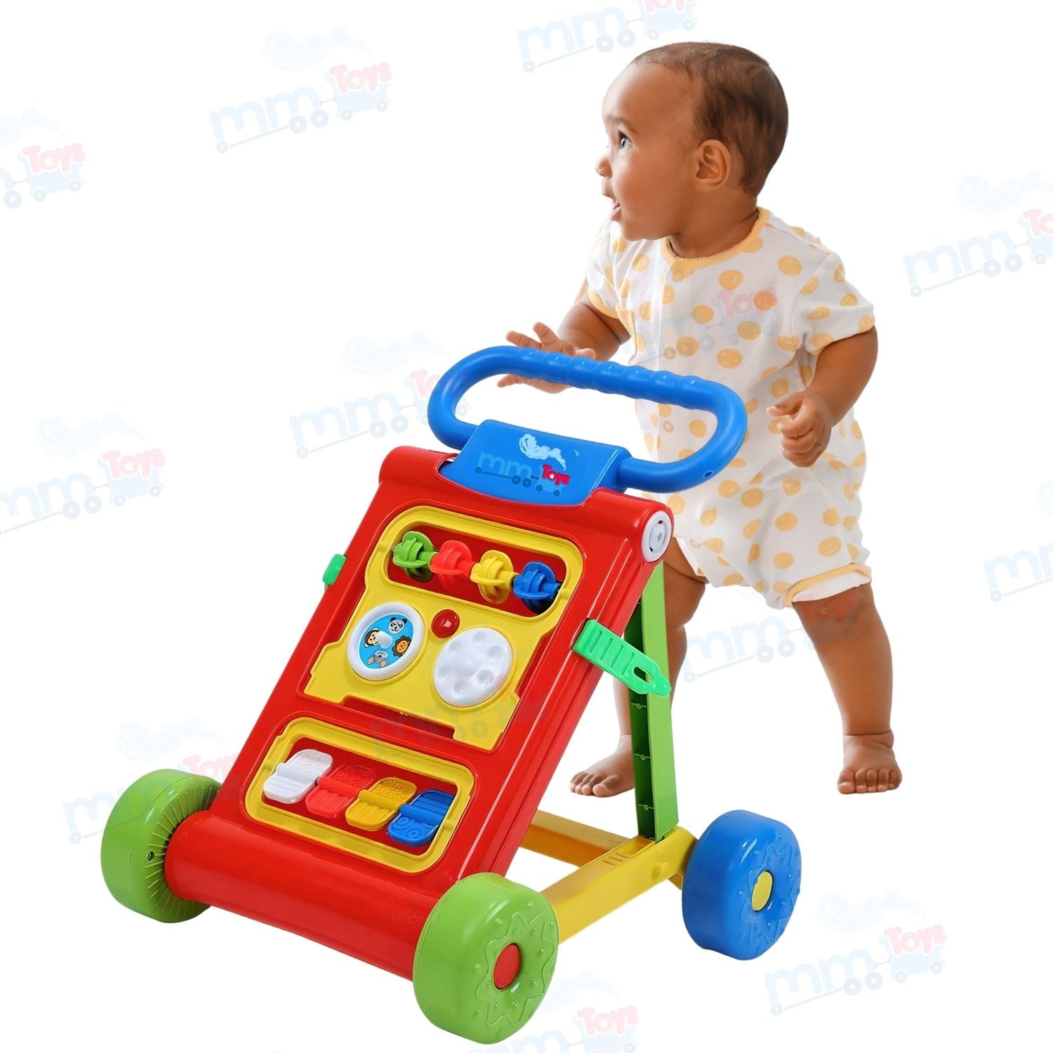 - πΆ Engaging and Safe Baby Activity Walker: The MM Toys Baby Activity Walker Trainer is designed to provide a fun and interactive way for infants aged 6+ months to explore and develop their motor skills. With music, anti-slip tyres, and a sturdy construction, it offers a safe and exciting walking experience.