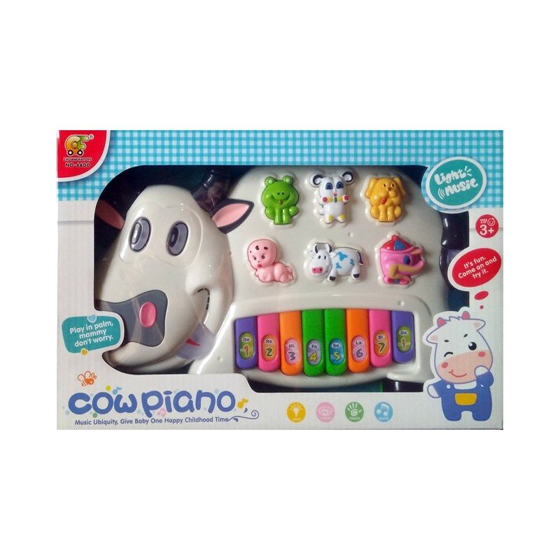 MM TOYS COW PIANO MUSICAL TOY WITH MULTIPLE ANIMALS SOUNDS ,FLASHING LIGHTS FOR KIDS 1-3 YEAR OLD KIDS -MULTI COLOR