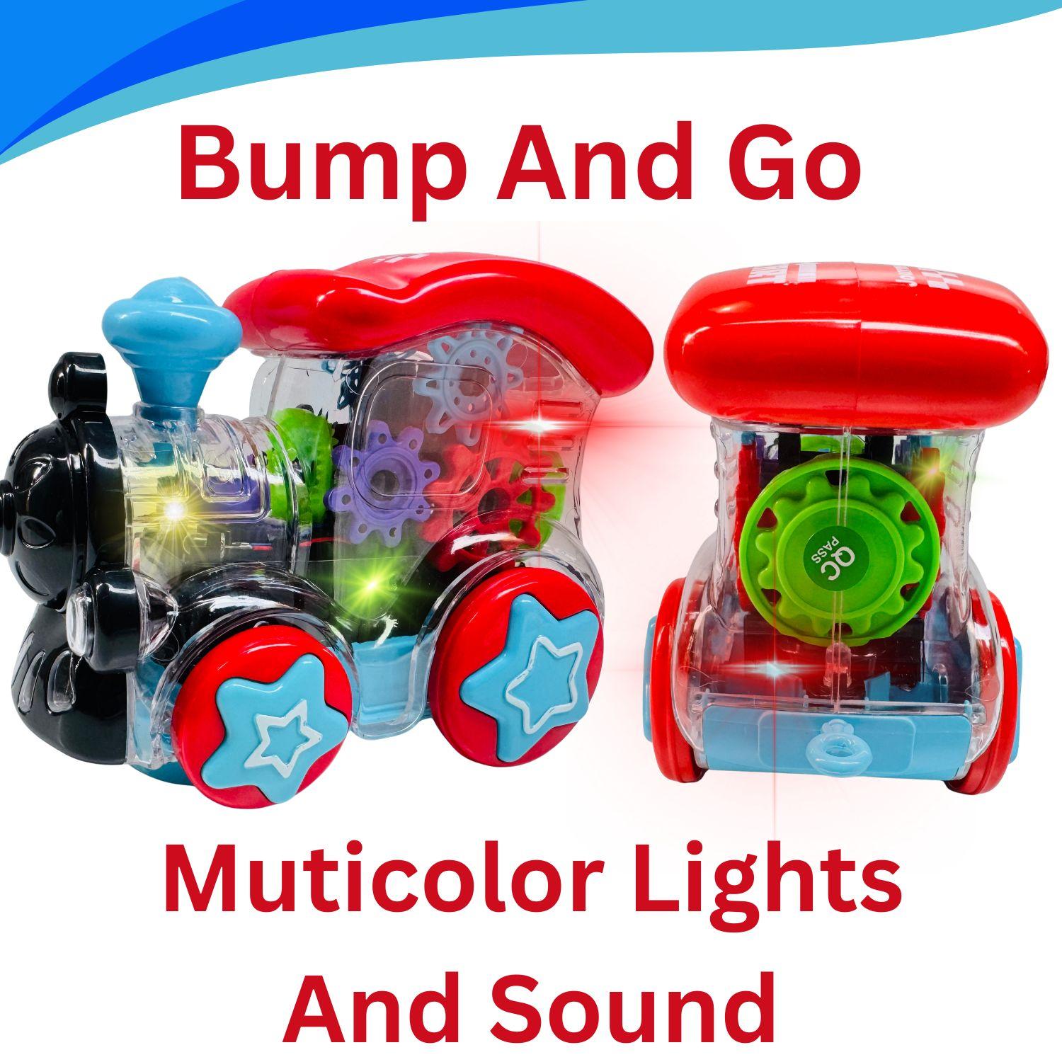 MM TOYS Gear Train Transparent Engine Car with Vibration, Light & Music, Directional Change, Multicolor Gear STEM Toy for Motor Skills 1+ Years