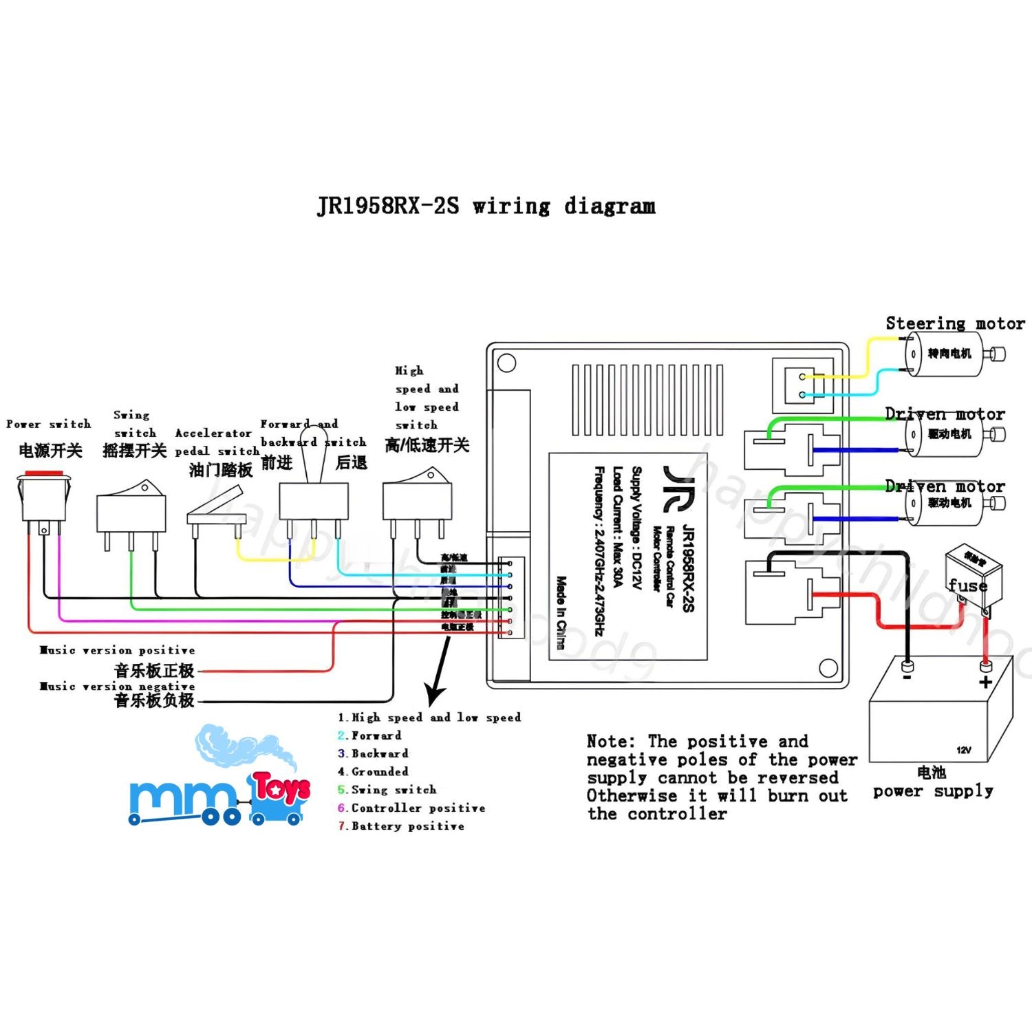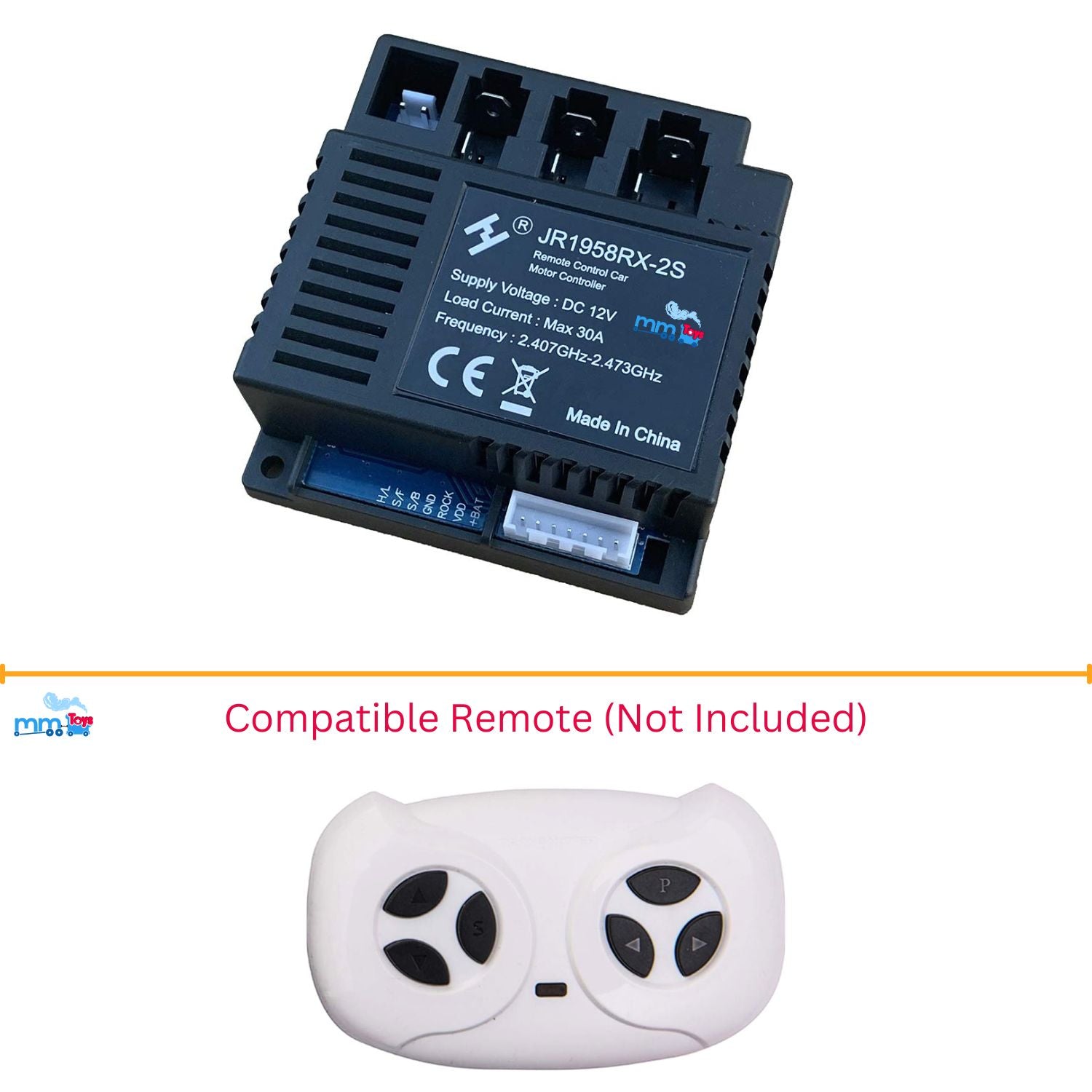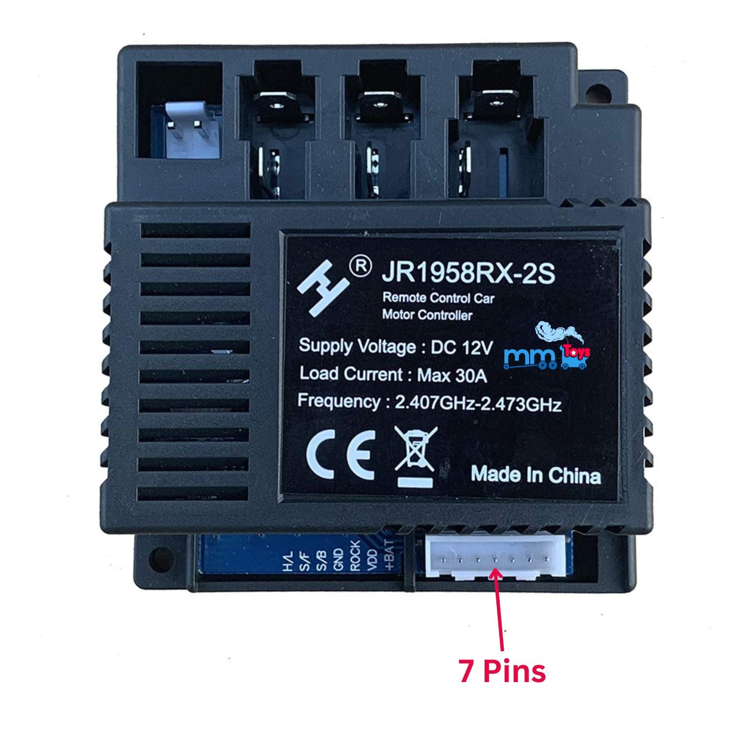 MM TOYS JR1958RX-2S 12V 2.4G 7 Pins Reciever Motor Controller Control Box For Kids Electric Car Replacement Part Accessory - Black