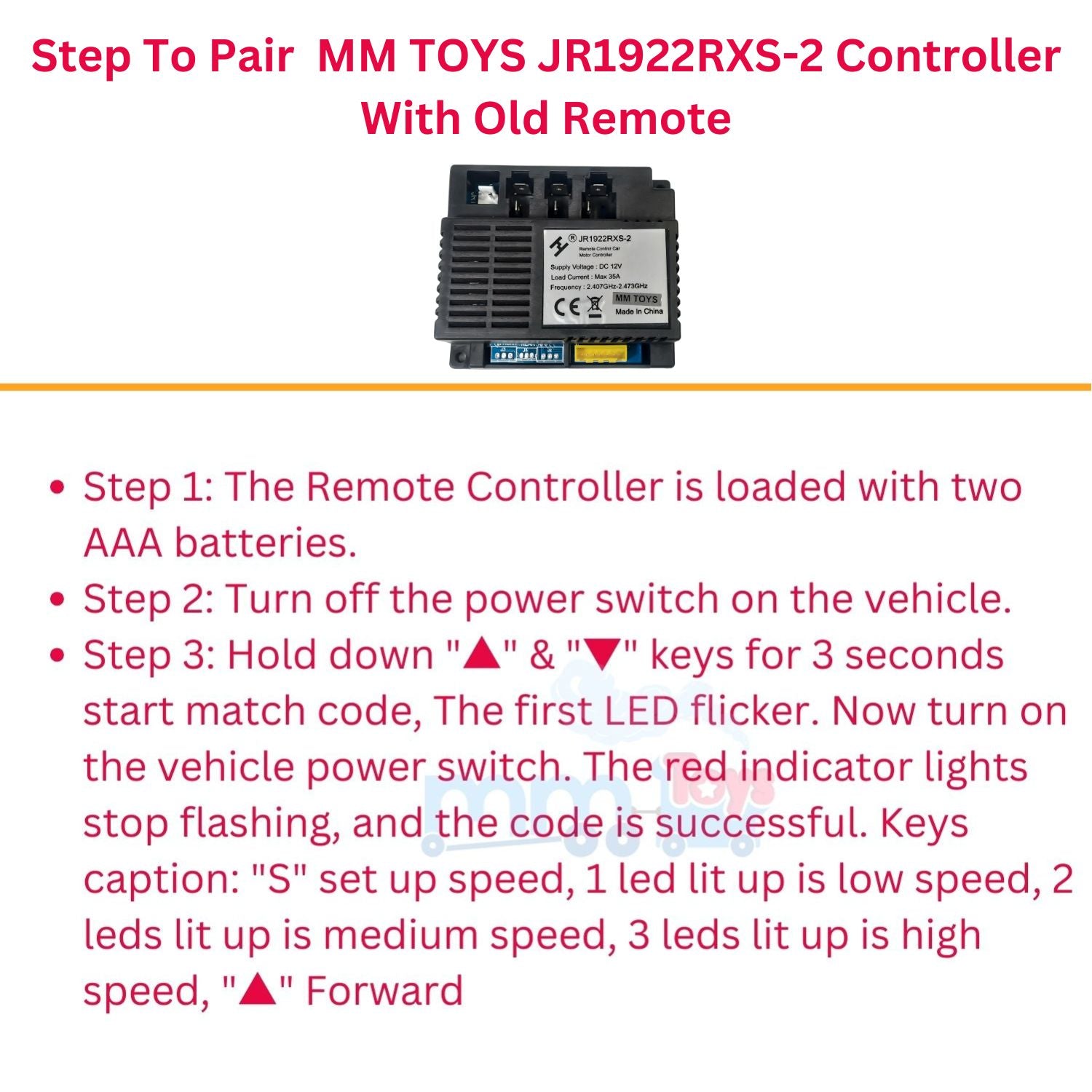 MM TOYS JR1922RXS-2, 35A Load, 2.407-2.473 GHz,12V Motor Reciever Controller Easy Install, Replacement Part for Kids Electric Car/Jeep/Bike - Black
