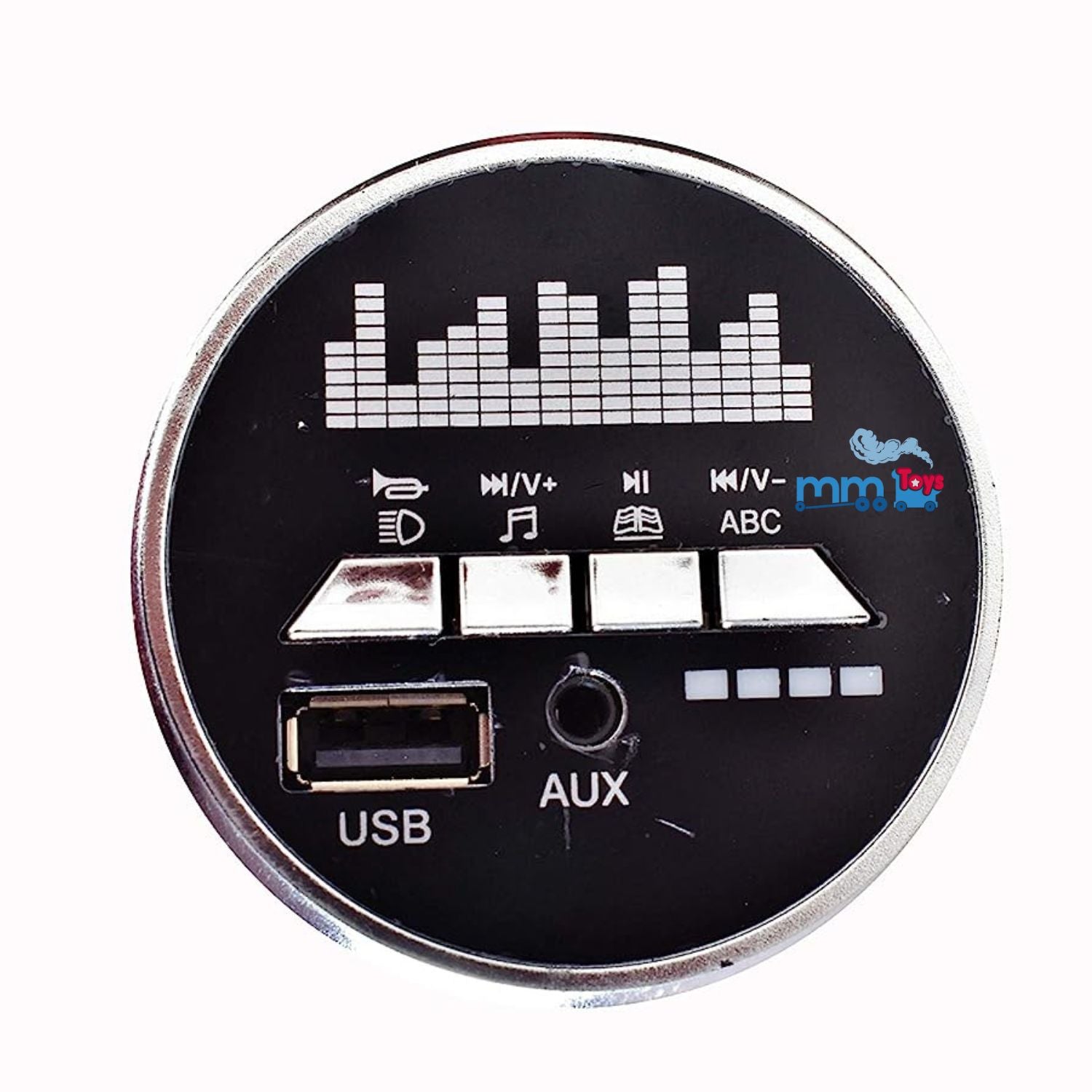 MM TOYS S-ZJC Music Player Panel Board for R1 & R3 Bike Ride-On, Round Shape, Complete Replacement Part with USB & AUX, Battery Charging Indicator, Silver, 12V Compatible