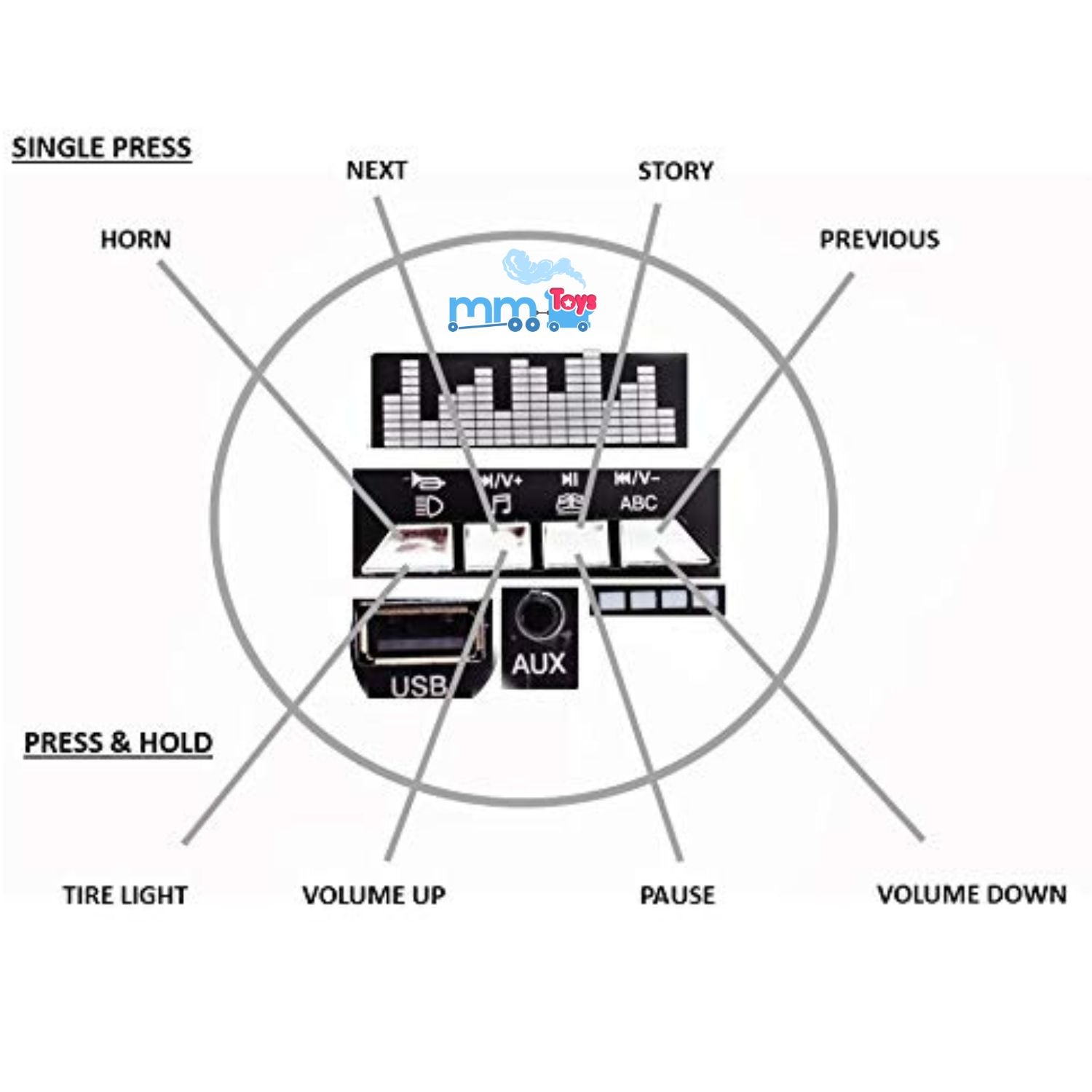 - Features: Equipped with USB & AUX ports, the panel lets your child enjoy their favorite tunes.