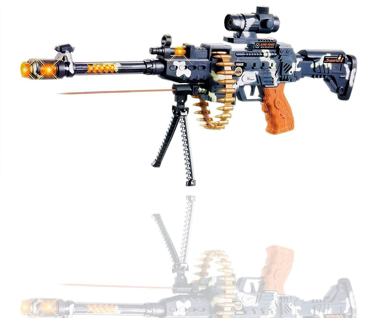 MM Toys Musical Machine Gun 25" Long: Vibration, Flash Lights, Rotating Dummy Bullets, Stand - Fun Playtime for Kids Ages 2-5