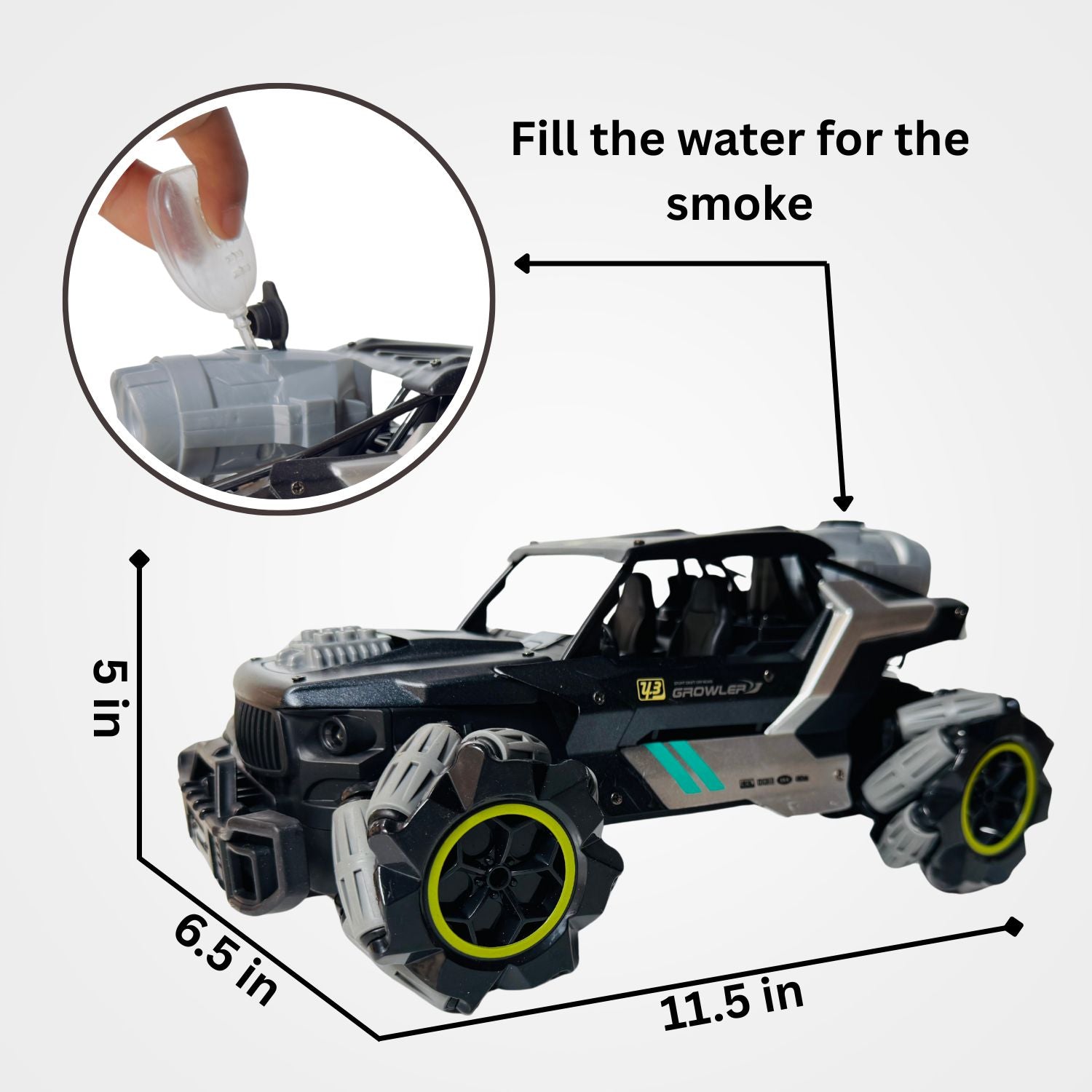 - What’s Inside the Box: 1 RC Car (9.5" x 5" x 5"), 1 Rechargeable Battery, 1 Charging Cable, 1 Water Dropper