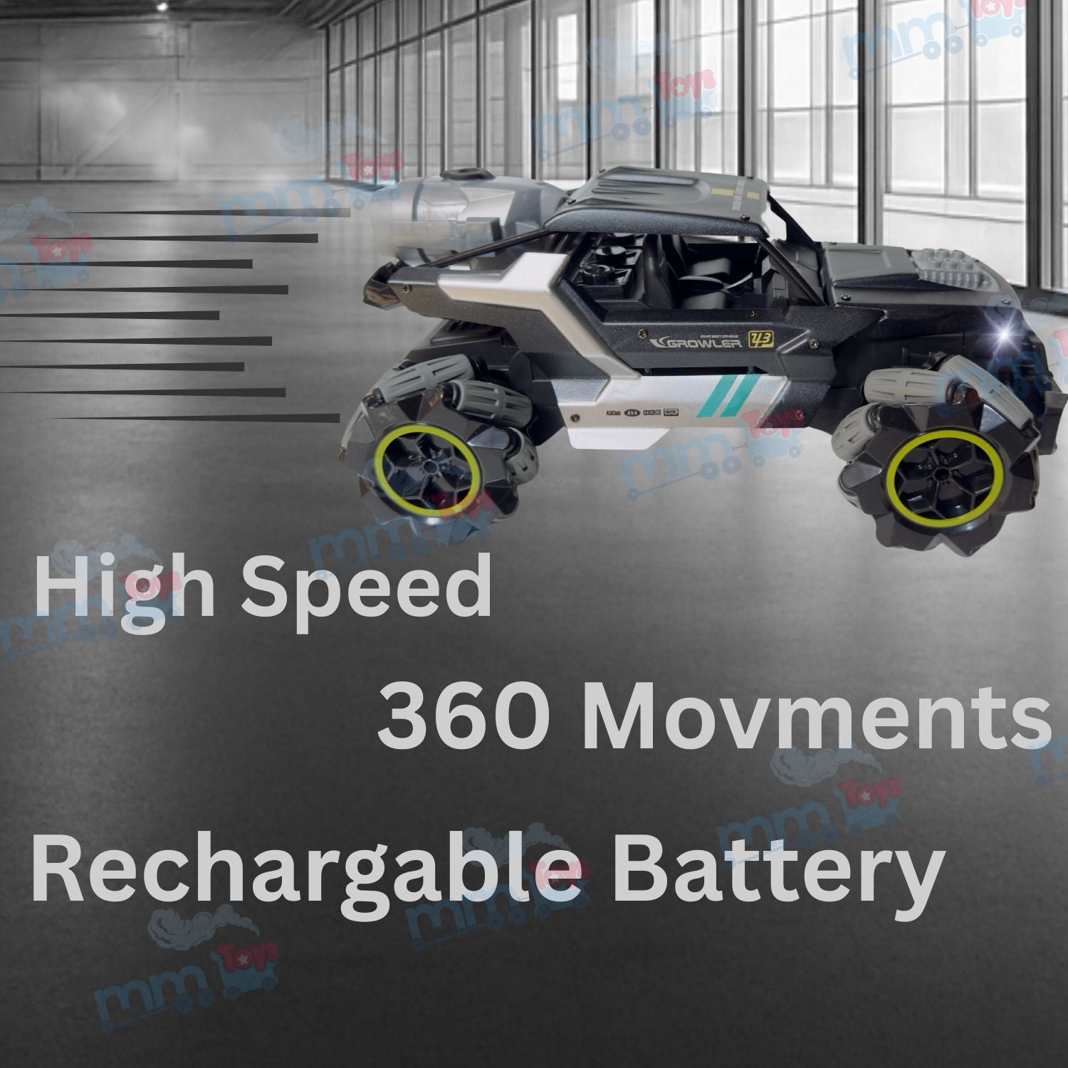 MM TOYS Off Road RC Car 4x4 – Metal Body, Mist Function, Lights & Sound, 360° Drift, Rechargeable Toy for Kids 3+ (Multicolor)