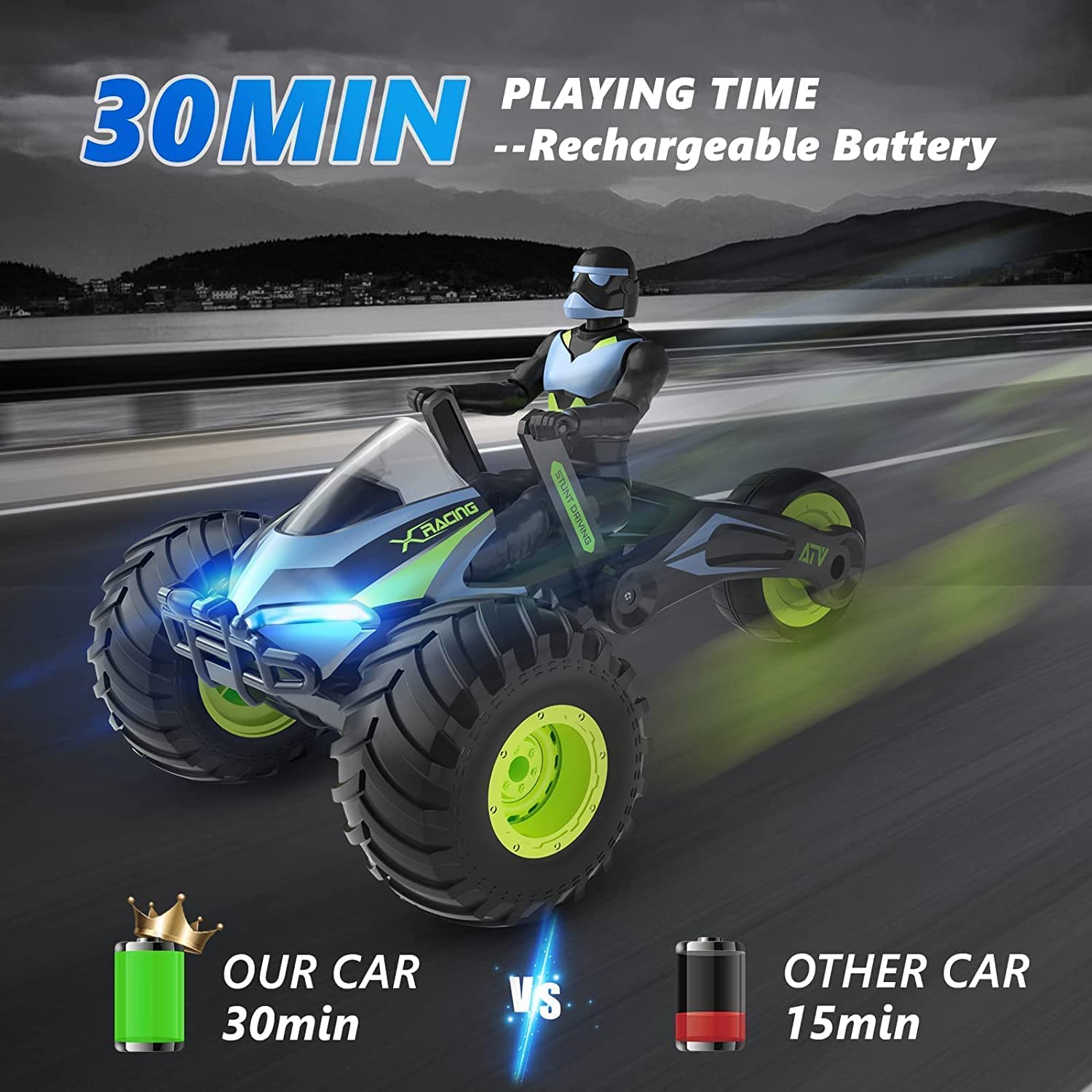 - 2.4 GHz Remote Control: : Experience the thrill of control with our R/C Stunt Racing Bike, which operates on a powerful 2.4 GHz frequency for optimal performance.