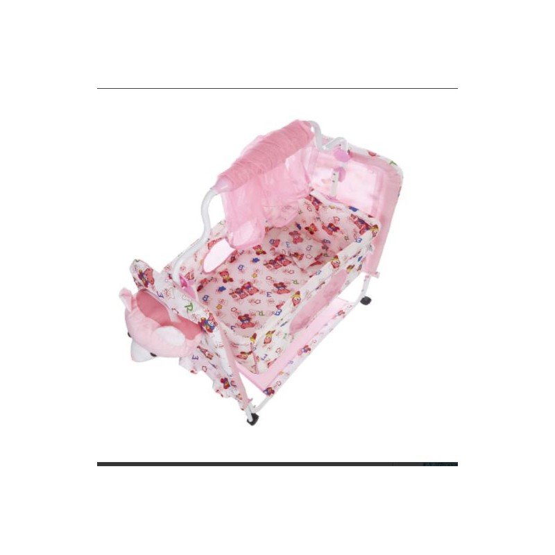 Mother's Love TEDDY CRIB CRADLE WITH MOSQUITO NET , UNIVERSAL WHEELS AND PLAYING Toy FOR 0+ MONTH PINK