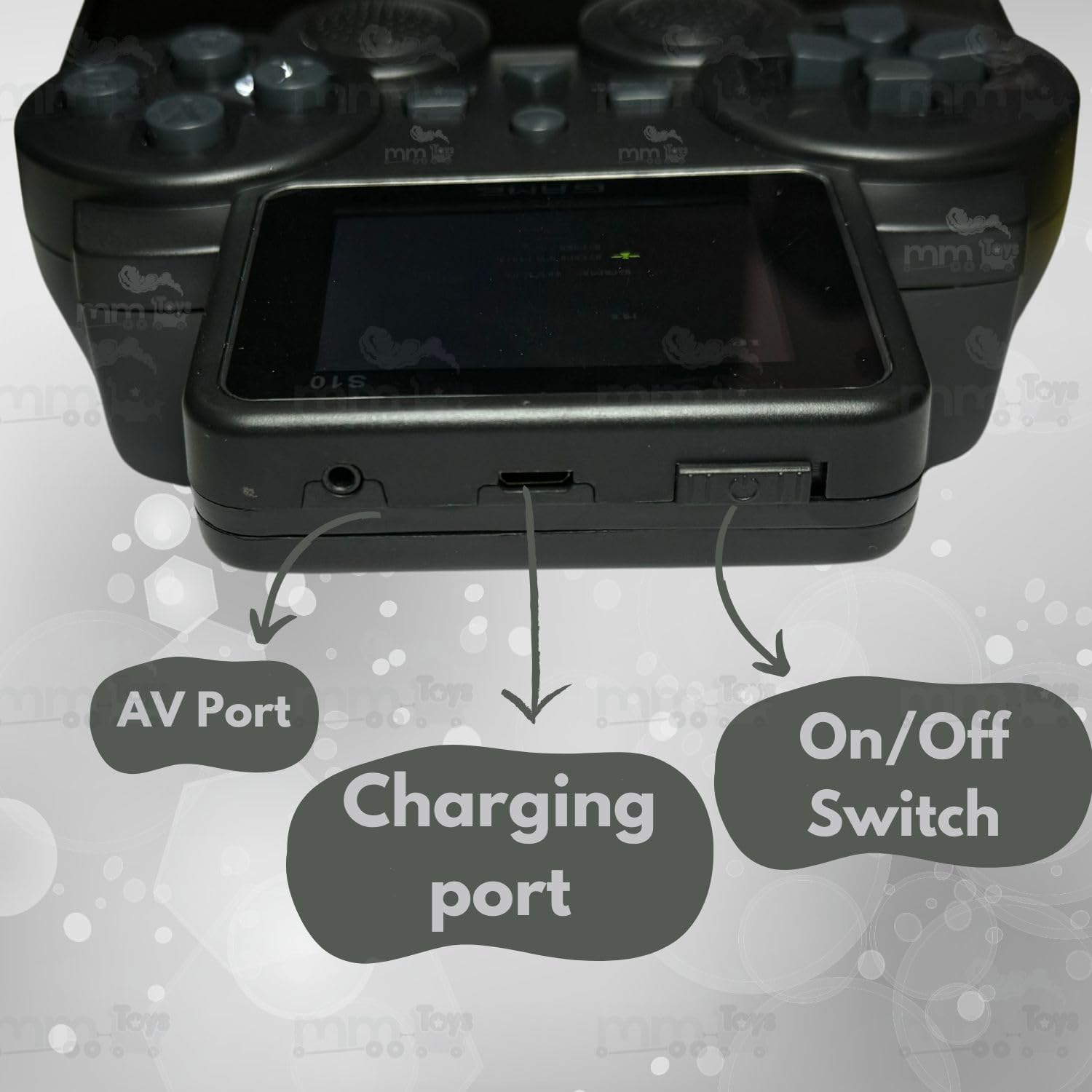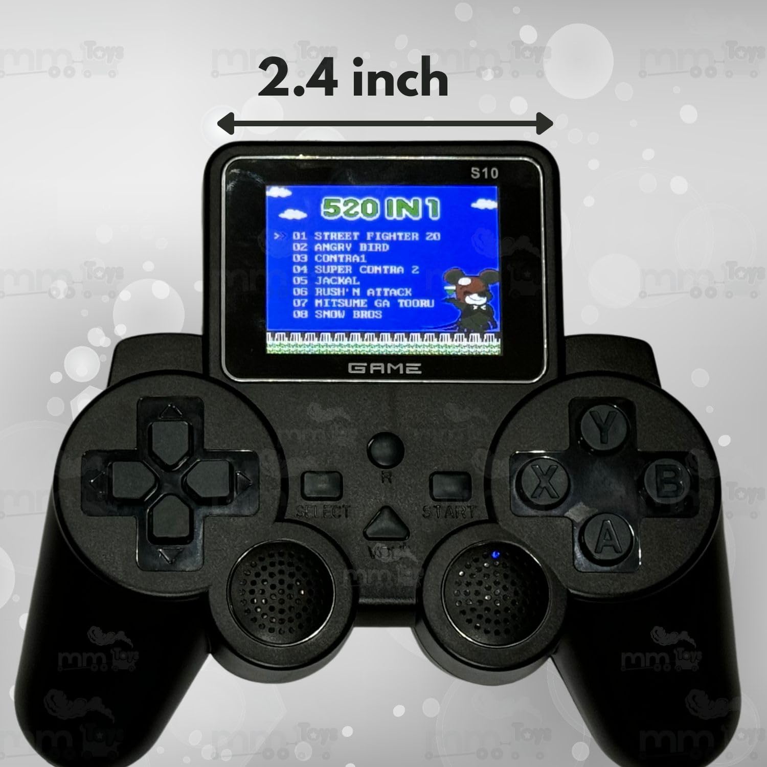 MM Toys Portable Video Game Gamepad With 2-Inch Color Screen | 500+ Preinstalled Retro Games -Rechargeable Battery - Video Game for Kids -Black