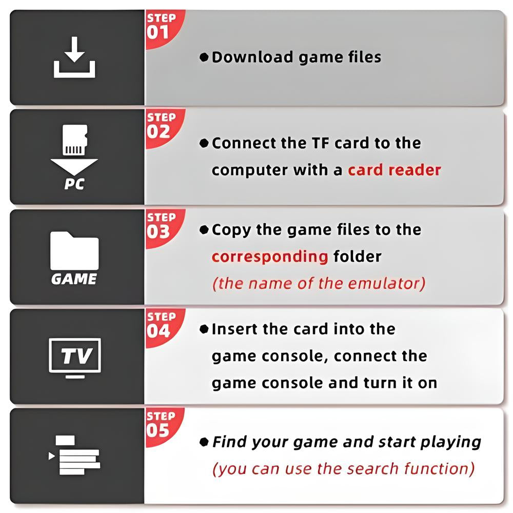 - Easy Exit from Games: Press SELECT + START simultaneously for two seconds to exit games.